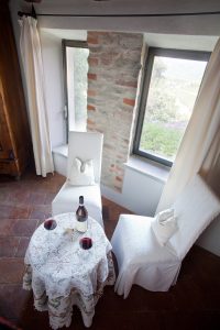Bagno privato e salottino romantico il tutto tra mura di pietra e un soffitto in legno; un ambiente accogliente e ricercato per godersi un soggiorno indimenticabile.